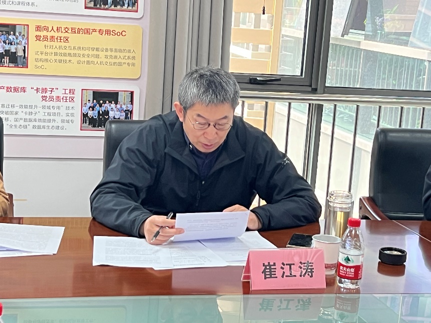 学院执行院长崔江涛领学了习近平总书记祝贺国防科技大学建校70周年贺信、习近平总书记考察哈尔滨工程大学重要讲话及习近平总书记给东北大学全体师生回信。习近平总书记的重要指示精神为高校发展进一步指明了方向,要把强化政治引领落实到教学科研全部实践,进一步提高办学质量和科技创新能力,努力提高办学治院水平。崔江涛谈到,学院要进一步反思办学模式,学习兄弟高校先进办学经验,汇聚力量集中资源强化“有组织的科研”,提高服务国家战略需求的能力。