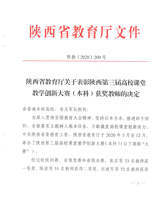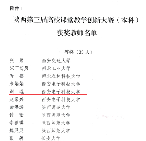 (通讯员 陈龙)日前,陕西省教育厅公布了第三届高校课堂教学创新大赛结果,nba官网谢琨老师获省级一等奖,取得该赛事开展以来nba官网最好成绩。
