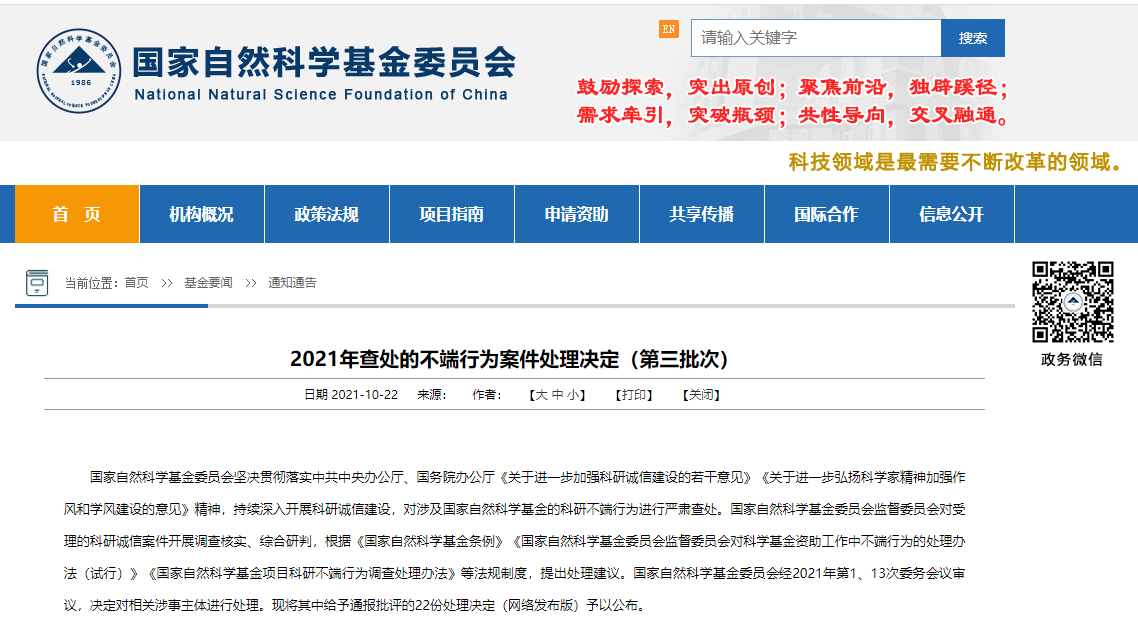 案例三:2021国家自然科学基金委员会查处的不端行为之一