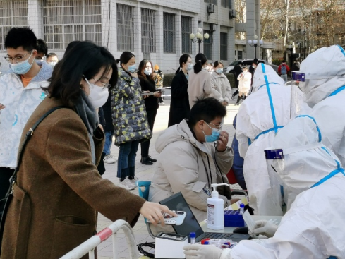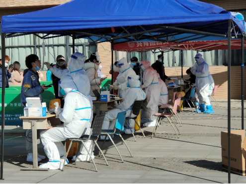 疫情就是命令!为配合南校区全员核酸检测,12月21日上午学院招募大学生志愿者,2018级本科生同学积极报名,群里党员同学喊出了“党员先上”的口号。志愿者同学们纷纷穿上隔离服,冲在抗疫一线,投入了紧张的检测工作。