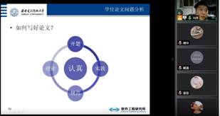刘伟副教授首先介绍了我校全日制专业学位论文评价体系;然后以“应用软件技术”类论文为例,从论文选题、论文结构、论文内容组织方式以及参考文献的写法等方面,细致地为同学们讲解了学位论文写作的方法和技巧;最后重点分析了论文撰写过程中出现的典型问题。