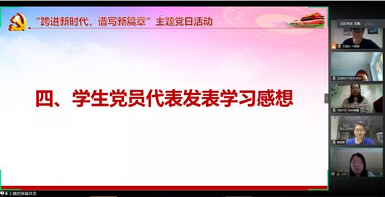 最后,学生党员代表分享了自己学习关于政府工作报告重点和习近平总书记的指示精神后的感想。吴敏达提到疫情期间我国着重稳定经济增长,发布减税、延期贷款等经济稳定措施,体现了国家的强大和以人为本的思想。苗凯斌谈到国家面对经济负增长,大规模失业问题,提出生存问题大于增长问题,体现了国家将民生作为最大的政治。李迎迎说到国家的强大不仅体现在经济增长快速,还体现在敢于在灾难面前放下一切,为生命让路,以人民至上。李尉铭就报告在肯定政府取得成果的同时也指出不足的问题,提出我们在平时的学习生活中也应善于提出问题,解决问题。贺同庆提出报告中处处体现着国家对于人民的关怀,将人民生命放在首位,时刻考虑人民的需求。冯夫腾就报告中提到的“在危机中遇新机,于变局中开新局”,提出我们作为青年党员,不能害怕困难,要时刻践行为人民服务的思想,为国家奉献自己的一份力量。