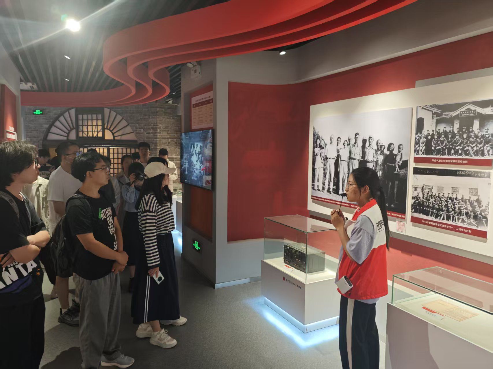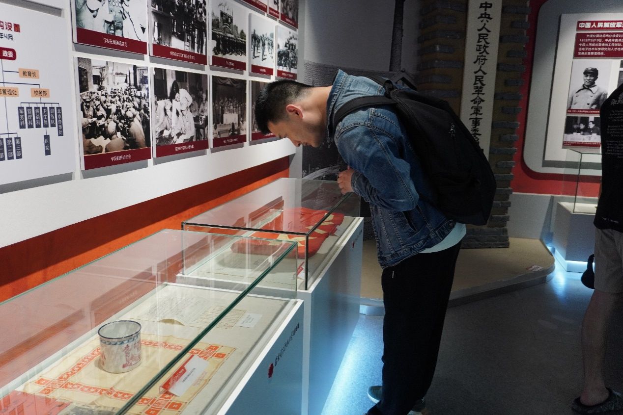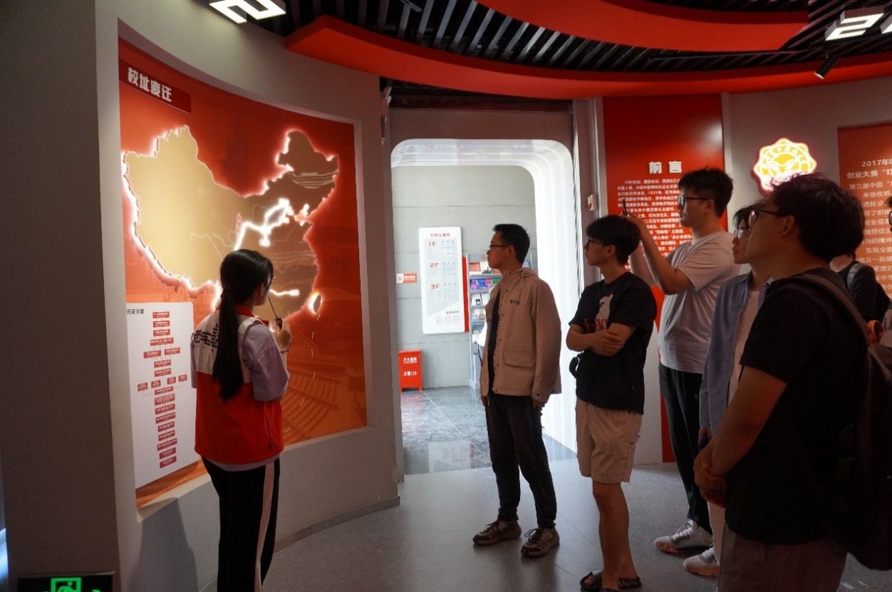 在校史馆中,讲解员以时间为脉络,通过“俯垂明训”“校史钩沉”“今日华章”三大篇章介绍了我校九十余载砥砺前行的光辉历程。驻足在一件件展品前,同学们仿佛开启了一场穿越历史的对话,深刻感受到学校的悠久历史和文化底蕴。2024级硕士研究生李豪谈到:“从半部电台起家,中央苏区诞生,长征路上办学,延安精神浸润,塞北风雪砥砺,一路走向古城西安,我深刻感受到学校深厚的红色基因,这让我更加坚定自己的理想信念,在未来的学习和生活中,我会努力拼搏,为实现‘计算报国’的目标不懈努力”。