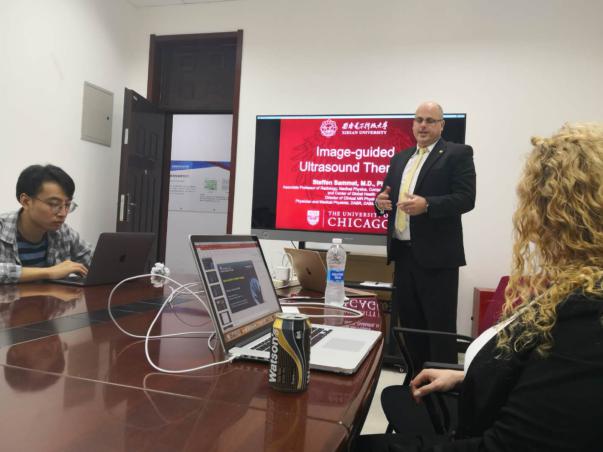 7月8日上午, Dr. Steffen Sammet教授以“Image-guided Ultrasound Therapy”为题,他的夫人Dr. Christina Sammet(美国西北大学放射科的诊断医学物理师)以“Balancing Risks in Pediatric Imaging”为题,分别为nba篮球竞彩购买平台研究生做了两场生动有趣的报告,对于拓展研究生的临床科研视野,开展国际合作具有非常重要的意义。