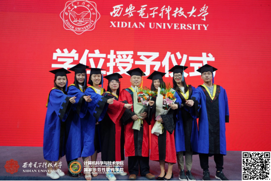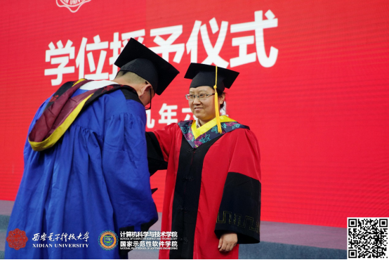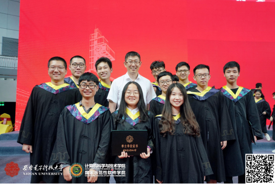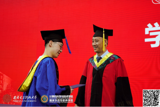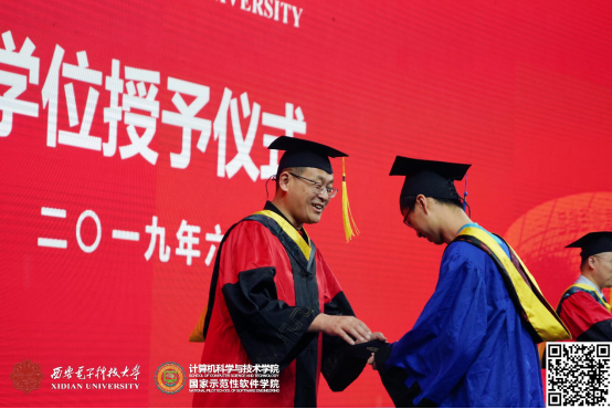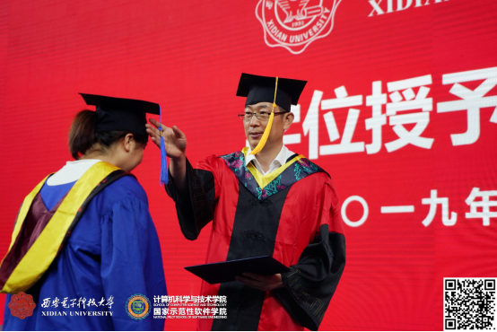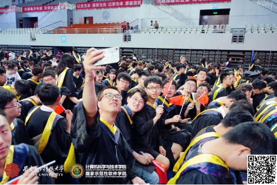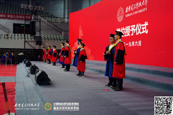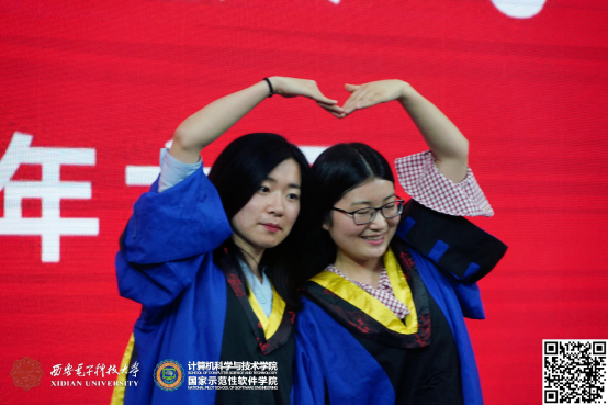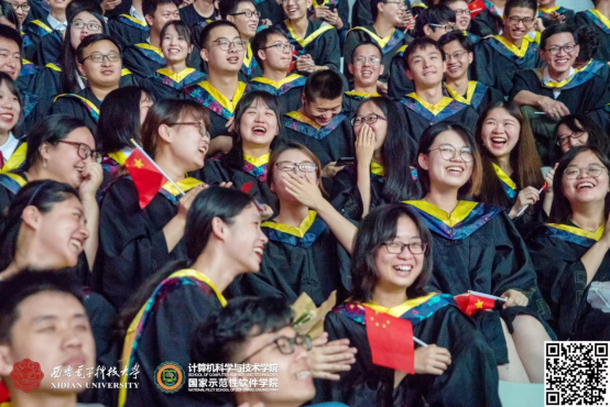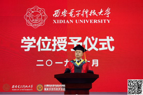 整个仪式在轻松、活泼的氛围接近尾声。最后,李青山教授给广大毕业生送去了深深祝福,他说:学院会一如既往的关注你们的成长,并积极支持你们的发展,希望大家在新的工作岗位上,再接再厉,传承西电品质,发扬西电精神!祝愿你们一路顺风,鹏程万里!