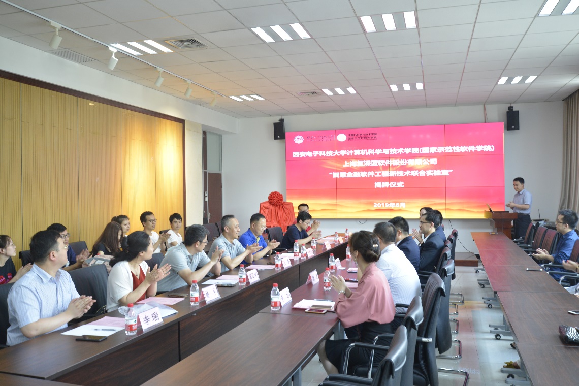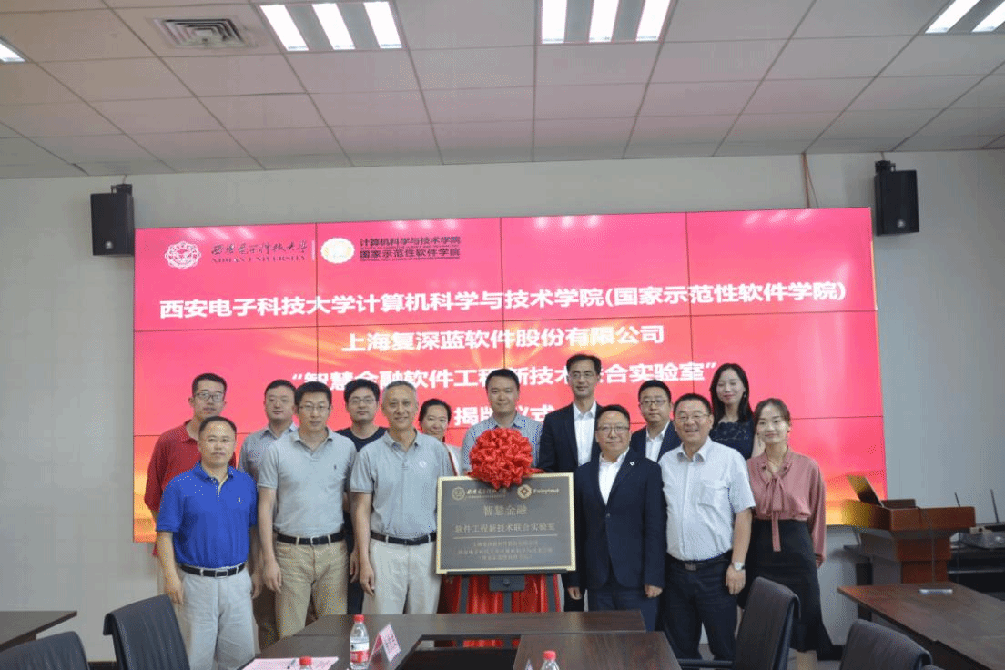 (通讯员 刘昭 褚华)2019年6月9日,nba篮球竞彩购买平台(国家示范性软件学院)与上海复深蓝软件股份有限公司共同为“智慧金融软件工程新技术联合实验室”举行了揭牌仪式。揭牌仪式由nba篮球竞彩购买平台软件工程系主任、软件工程学科建设秘书长宋胜利主持,校长助理王泉、学院党委书记李青山、执行院长崔江涛、软件工程学科智能化软件工程技术方向学术骨干张亮、李瑞、褚华、徐悦甡以及上海复深蓝软件股份有限公司领导共同出席了本次活动。