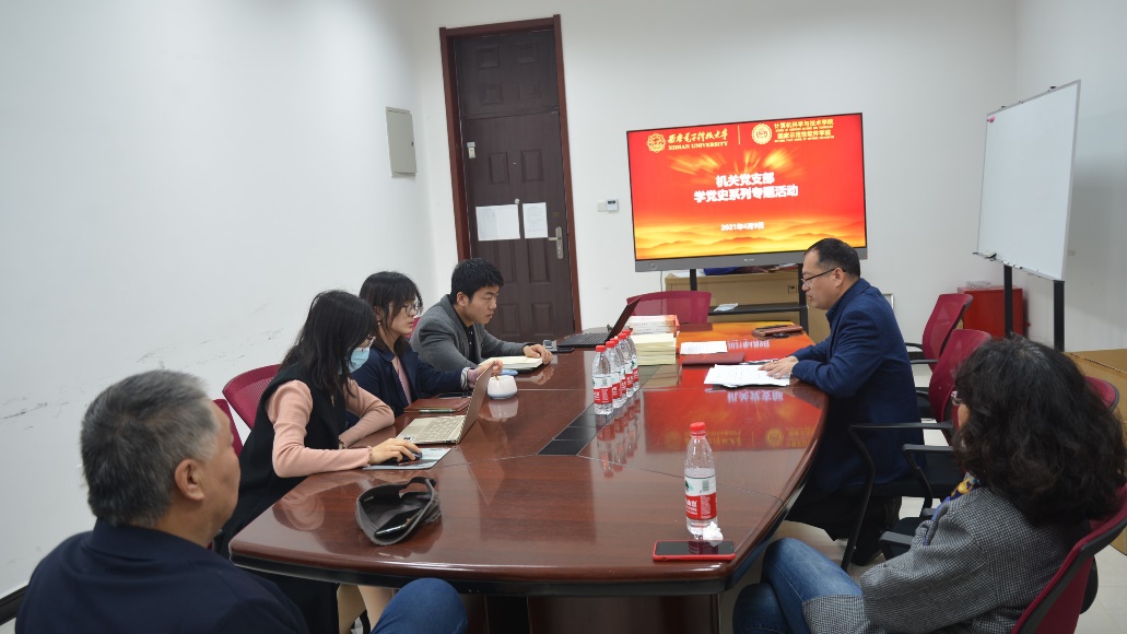 机关党支部书记赵韩强首先传达了习近平总书记在党史学习教育动员大会上的重要讲话精神,教育部党组书记、部长陈宝生同志在教育部召开党史学习教育动员大会的讲话精神,学校党委书记查显友同志在学校召开的党史学习教育动员大会上的讲话精神,带领全体党员深入学习了《nba买球正规官方网站关于开展党史学习教育的实施方案》,从六个方面讲解了学习内容,分阶段安排了本年度学习安排,分层次讲述了五个方面重点任务。同时,与会同志集中学习了习近平总书记致厦门大学建校100周年的贺信。他谈到,“学党史”是贯穿2021全年工作的一项重大政治任务,机关支部党员同志要提高政治站位,统一思想,自觉学习习近平总书记重要讲话精神,全力学好党史、学习老一辈革命的英雄事迹,践行“全心全意为人民服务”的办学宗旨,以良好的精神风貌和扎实的工作态度迎接建党100周年和建校90周年。