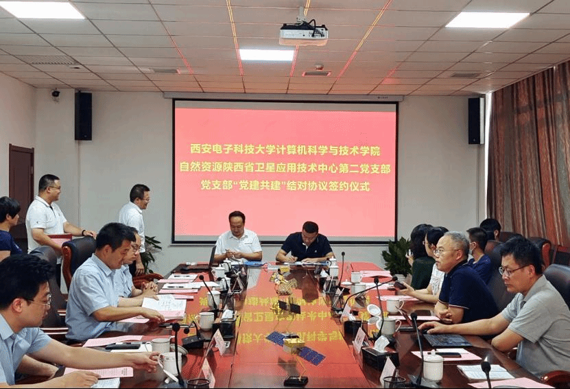 (通讯员 何敏之 邢智琪)8月24日下午,西电nba篮球竞彩购买平台大数据与视觉智能研究所本硕博师联合一支部与自然资源陕西省卫星应用技术中心二支部结对共建签约仪式在自然资源陕西省卫星应用技术中心举办。nba篮球竞彩购买平台党委书记李青山,大数据与视觉智能研究所所长、网教院院长苗启广,学院党委副书记张莹莹及联合党支部师生党员代表一行12人赴中心调研交流并参加签约仪式。