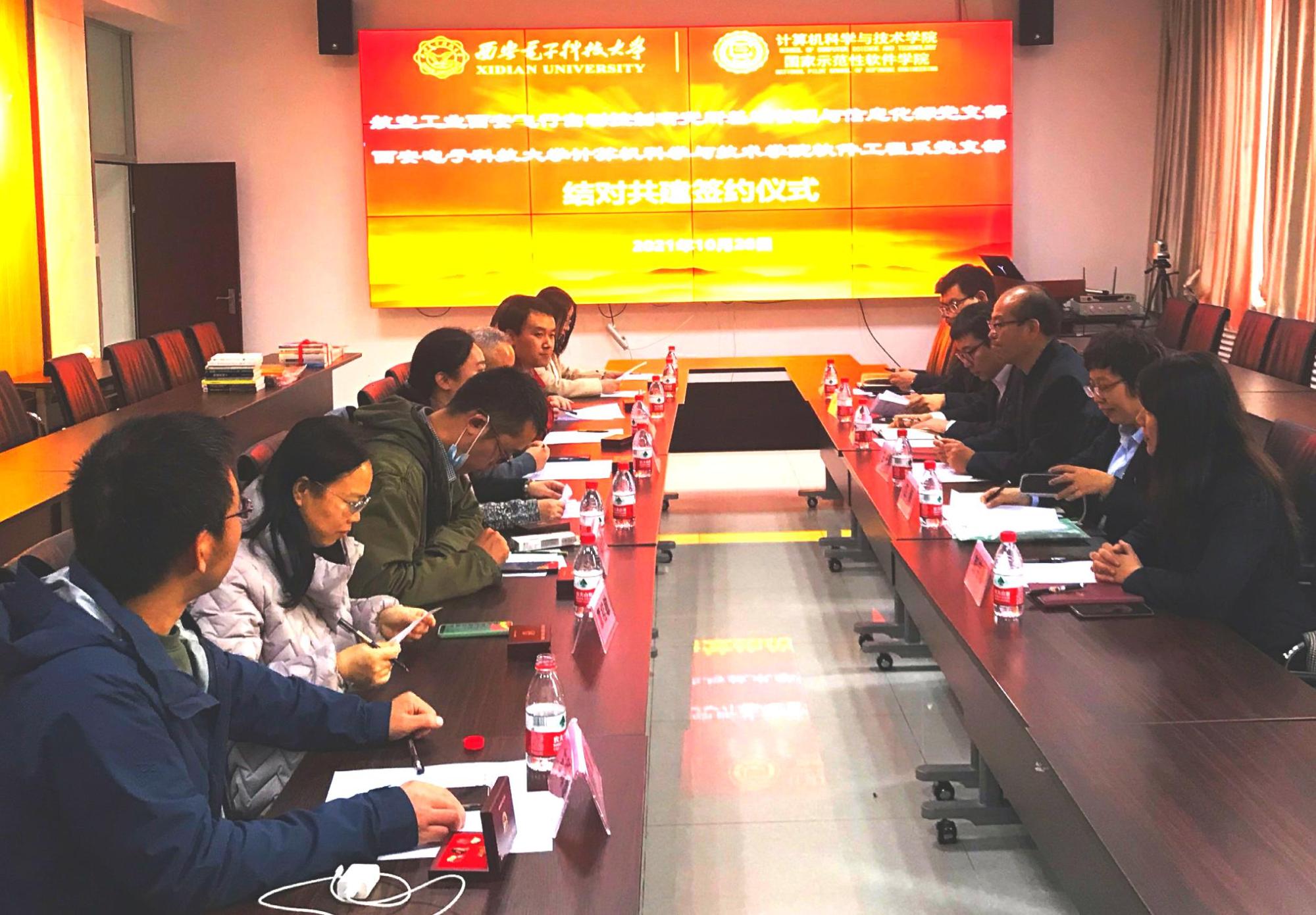 (通讯员 覃桂敏)为进一步深化党史学习教育,落实“我为师生办实事“相关要求,为教师搭建对外交流协作平台,nba篮球竞彩购买平台软件工程系党支部和航空工业西安飞行自动控制研究所基础管理与信息化部党支部于2021年10月28日举行了党支部结对共建启动仪式。航空工业西安飞行自动控制研究所党委书记王东辉携基础管理与信息化党支部党员代表来院参会。软件工程系党支部联系指导的党委委员、计科院党委书记李青山、软件工程系党支部支委与党员代表参加了本次活动,软件工程系党支部书记褚华主持了启动仪式。