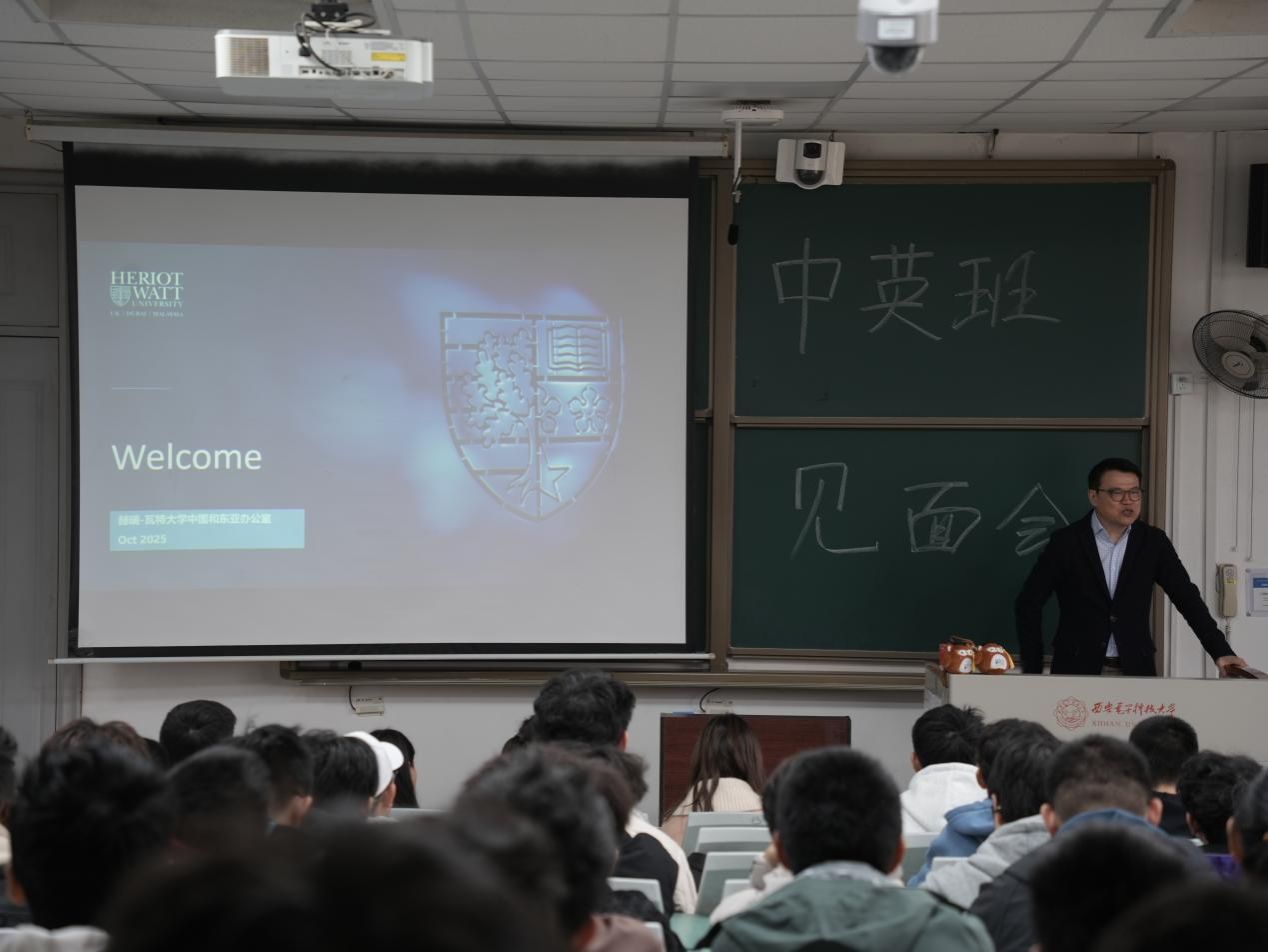 10月22日下午,王忠义老师代表英国赫瑞瓦特大学来访西电,与2025级计科院中英班学生于A-527开展交流分享活动。他结合赫瑞-瓦特学习工作的亲身经历,为学生详细介绍项目特色以及英国学习生活建议。他阐述了赫瑞瓦特大学的办学概况、国际排名与学科特色,并就项目的招生要求与毕业生就业情况,并系统展示了英方涵盖安全保障、就业指导、心理咨询与医疗服务的全方位支持体系。问答环节中,他就赫瑞瓦特大学的校史及现状与学生进行互动,结合丰富的图片展示,进一步介绍学校多元的社团文化及爱丁堡深厚的历史底蕴与城市魅力,有效激发了同学们对未来英国学习生活的热情与期待。